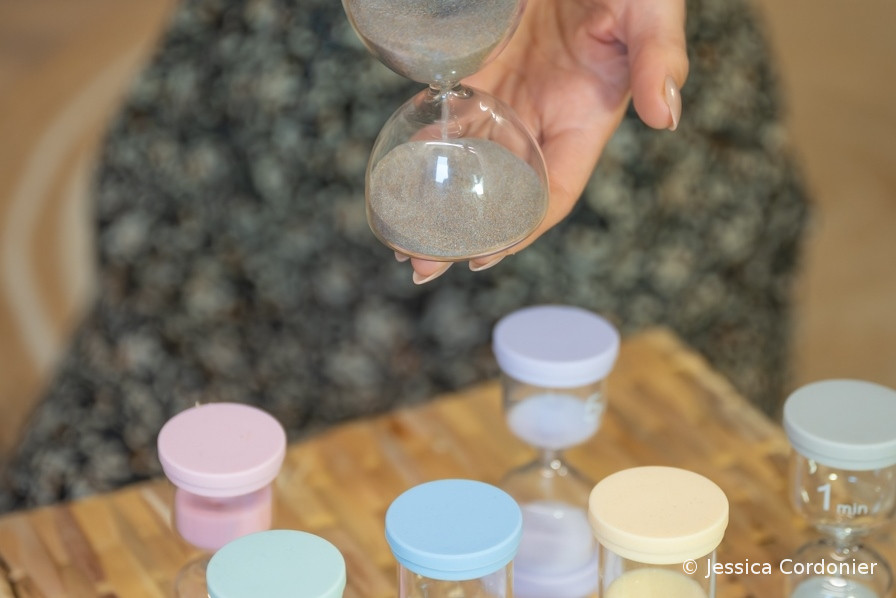 Nous explorerons aussi la perception du temps et du choix. Lorsque le temps est rendu visible, par exemple grâce à un sablier, il n'est pas perçu de la même manière. Le temps devient alors un espace d'observation choisi, permettant de mieux ressentir ses forces et ses résistances.
